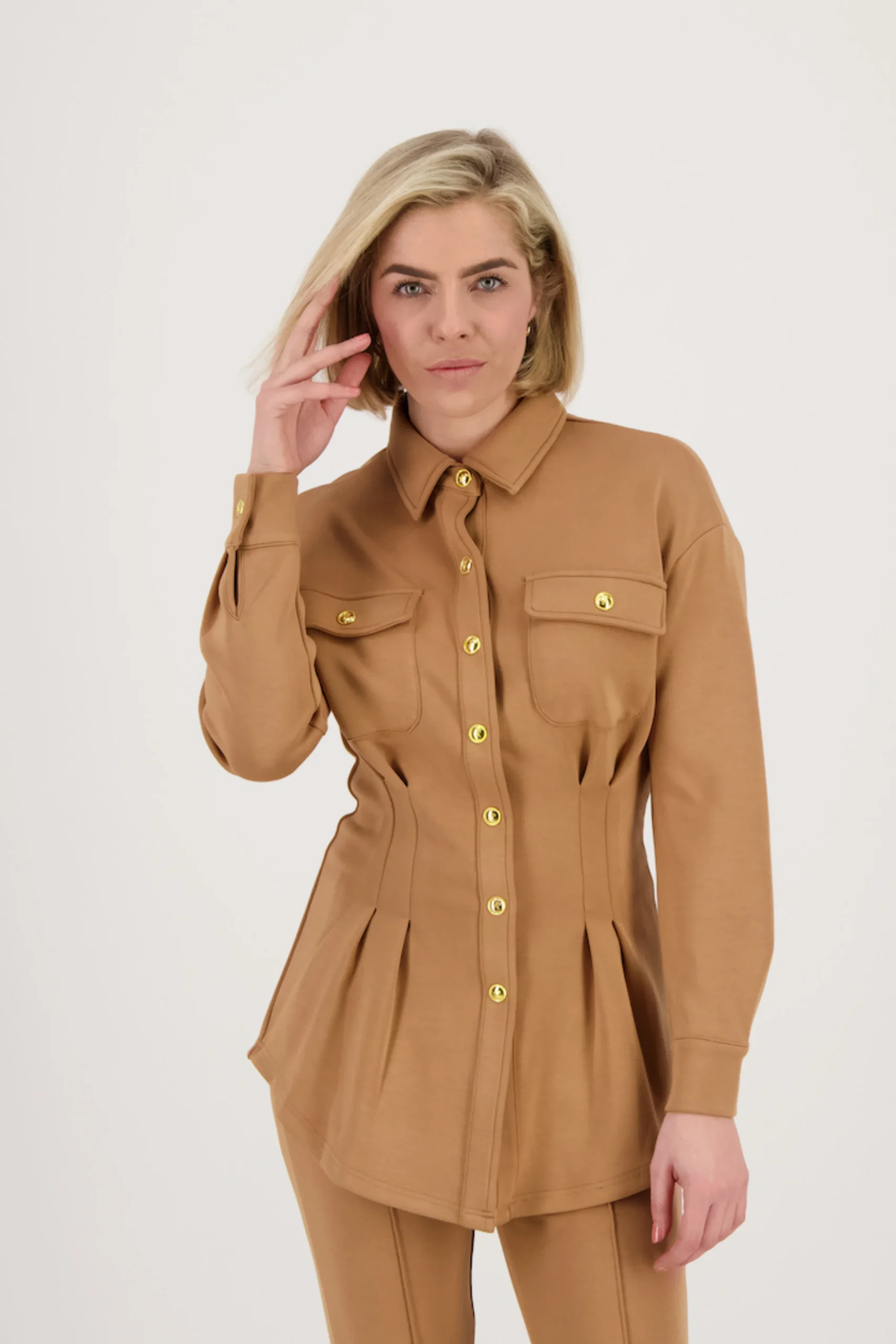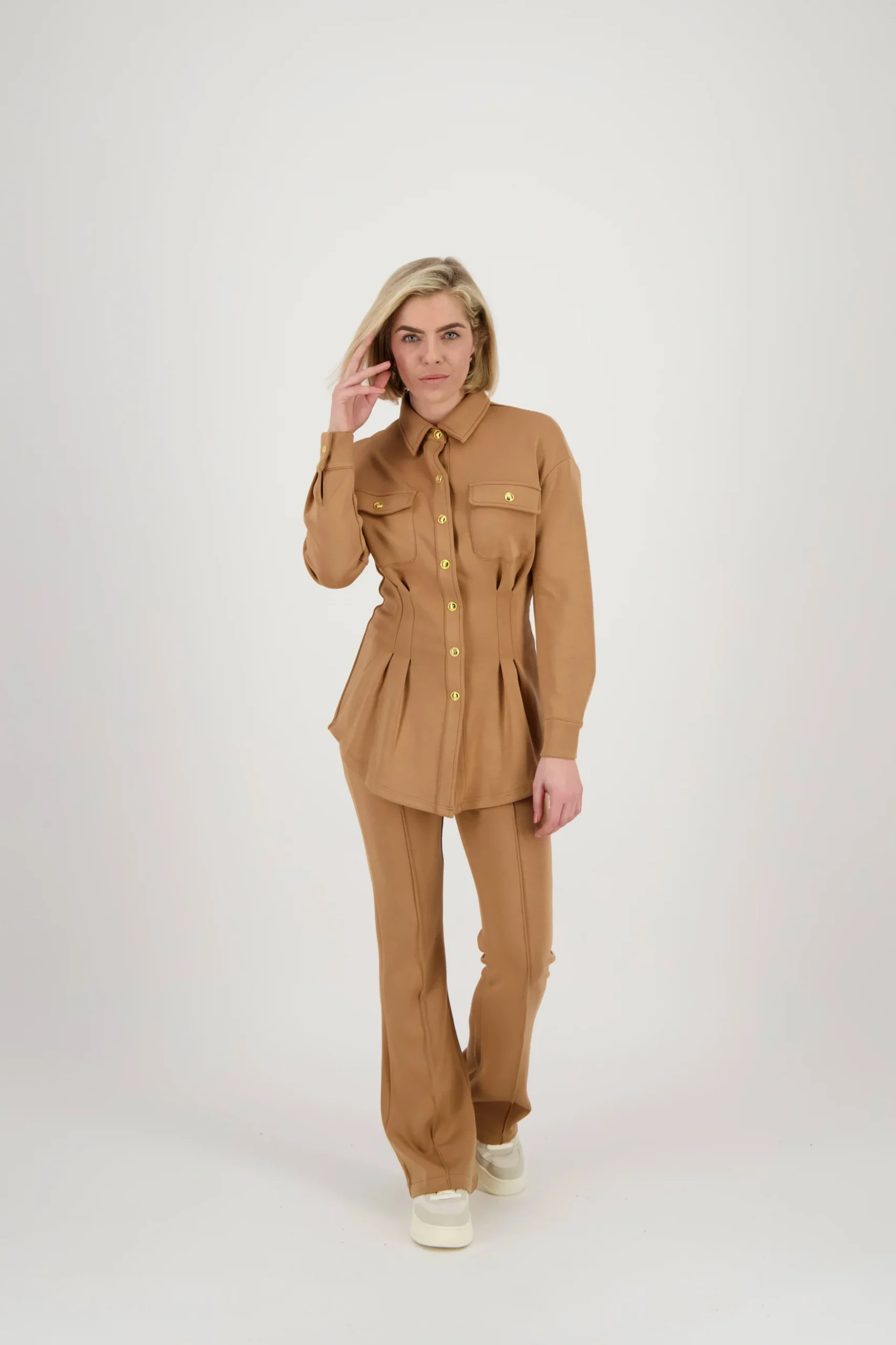 De SIENNA blouse heeft een perfecte combinatie van stijl en comfort. De blouse is gemaakt van een heerlijke zachte kwaliteit met stretch, waardoor een comfortabele pasvorm gegarandeerd is. De blouse heeft lange mouwen, een klasssieke kraag, charmante klepzakjes op de borst, gouden drukknoopsluitingen aan de voorkant en een getailleerde pasvorm met plooit details. Draag de SIENNA blouse Sienna met onze POPPY pants voor een prachtige en stijlvolle co-ord look.