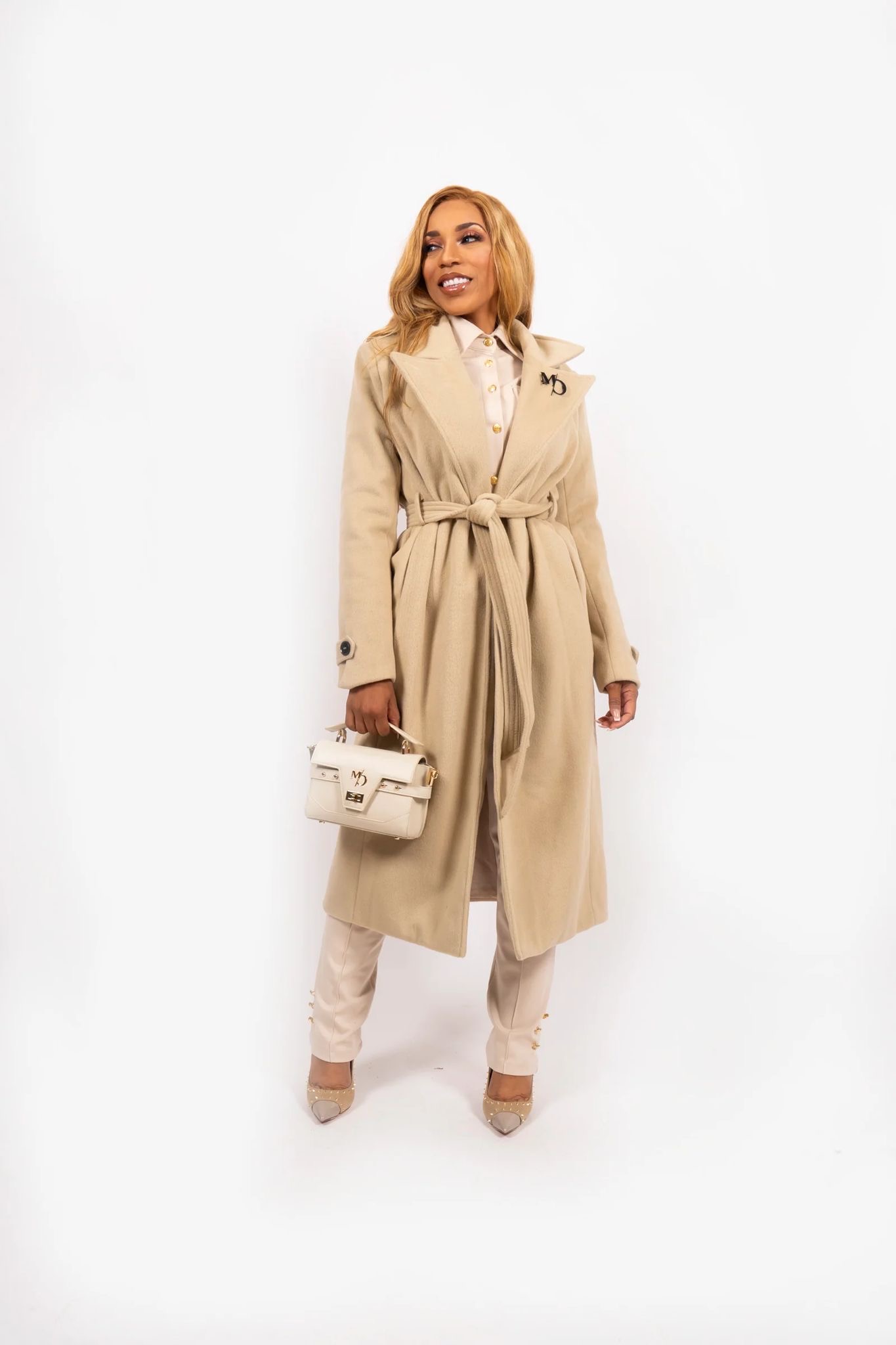 Coat with black buttons