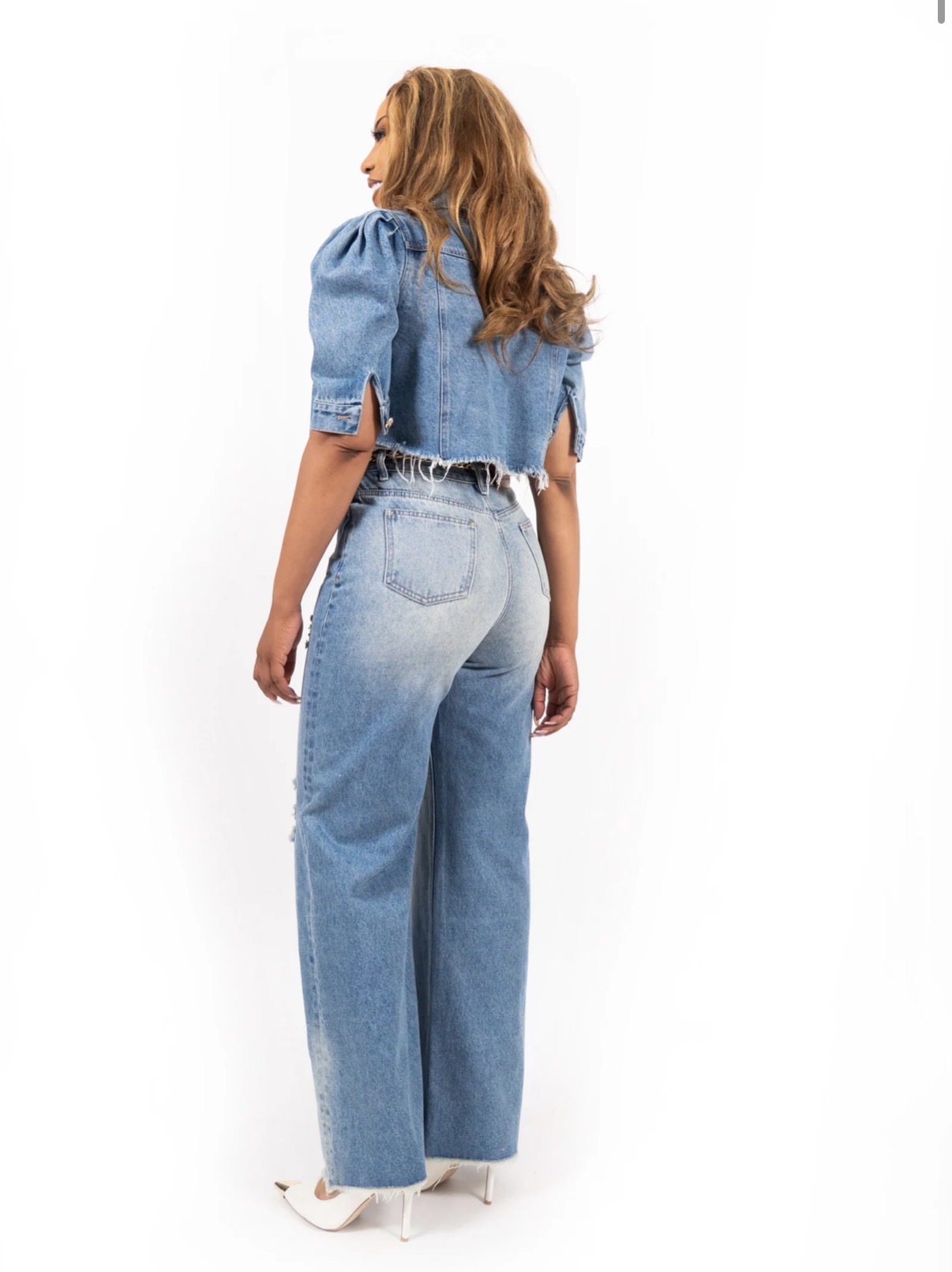 De Lumora ripped denim wide leg jeans is een trendy en krachtige eyecatcher met een moderne pasvorm. Deze lichtblauwe high waist jeans heeft een wide leg model dat zorgt voor een elegante en verlengende look.