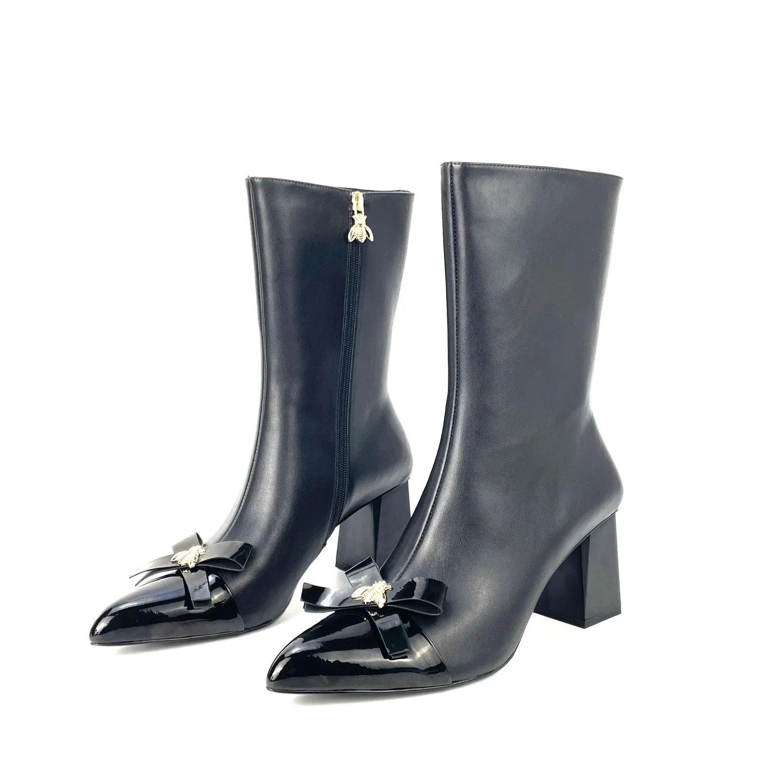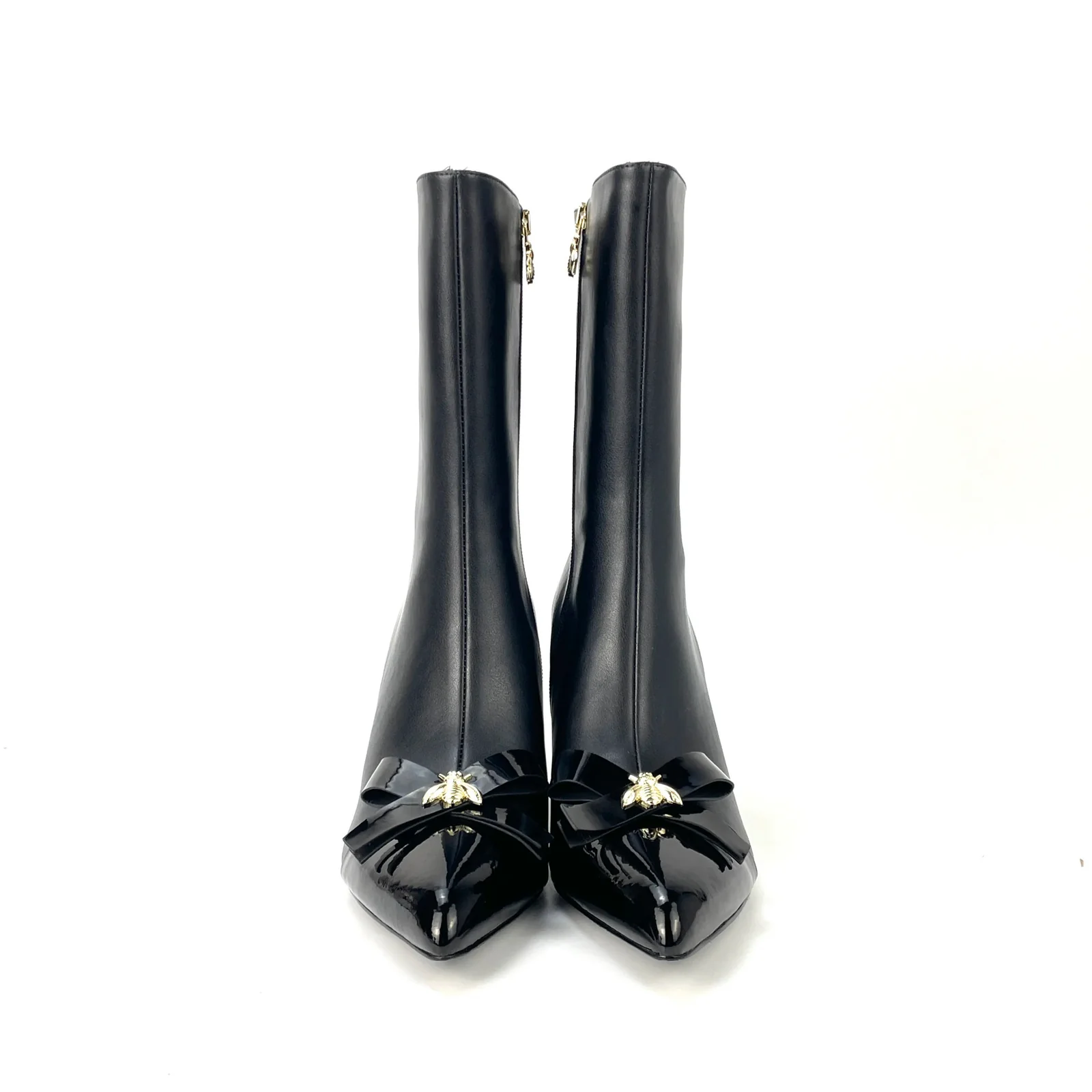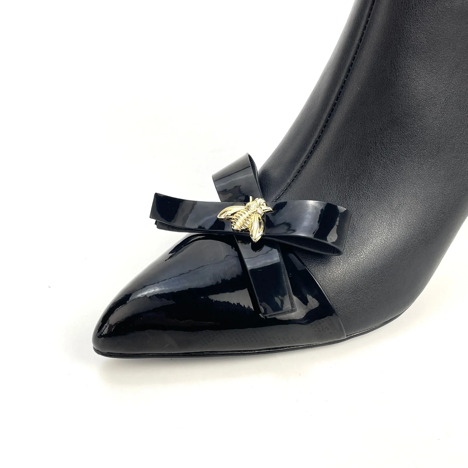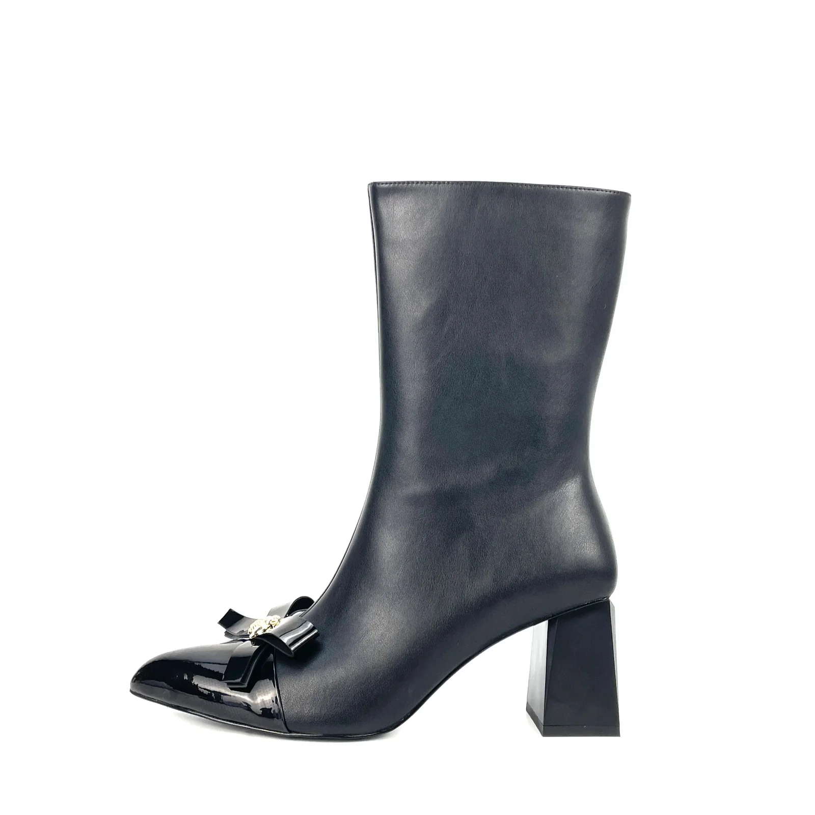 Enkel laars met lak en strik detail. Hak hoogte 7 CM